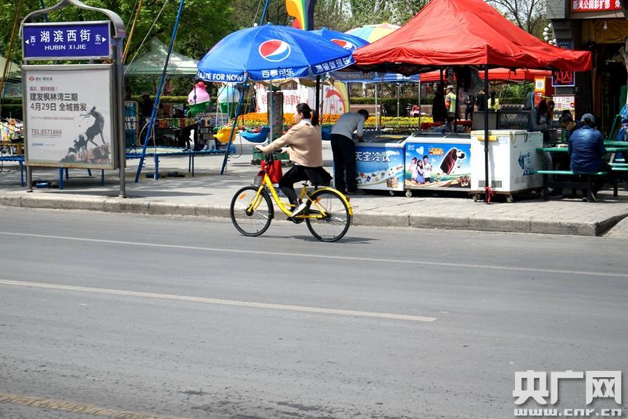 市民騎行(央廣網(wǎng)實習(xí)記者靳樹言 攝) 4月13日,銀川市政府和北京摩拜科技有限公司和北京拜克洛克科技有限公司簽定合作協(xié)議,引進摩拜和OFO兩家共享單車投放銀川三區(qū)及濱河新區(qū)。 -