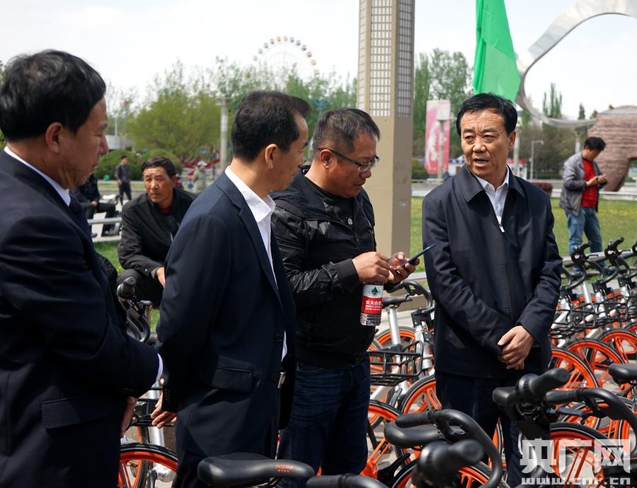 銀川市長白尚成(右一)了解共享單車情況(央廣網(wǎng)實習(xí)記者靳樹言 攝) 根據(jù)合作協(xié)議,兩家企業(yè)將分三期,在今年6月底之前投放3萬輛共享單車,滿足市民的低碳出行需求! -