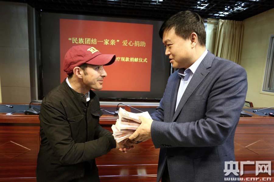 新疆及全國攝影家和社會各界愛心人士捐助的善款交到受捐人手中 -