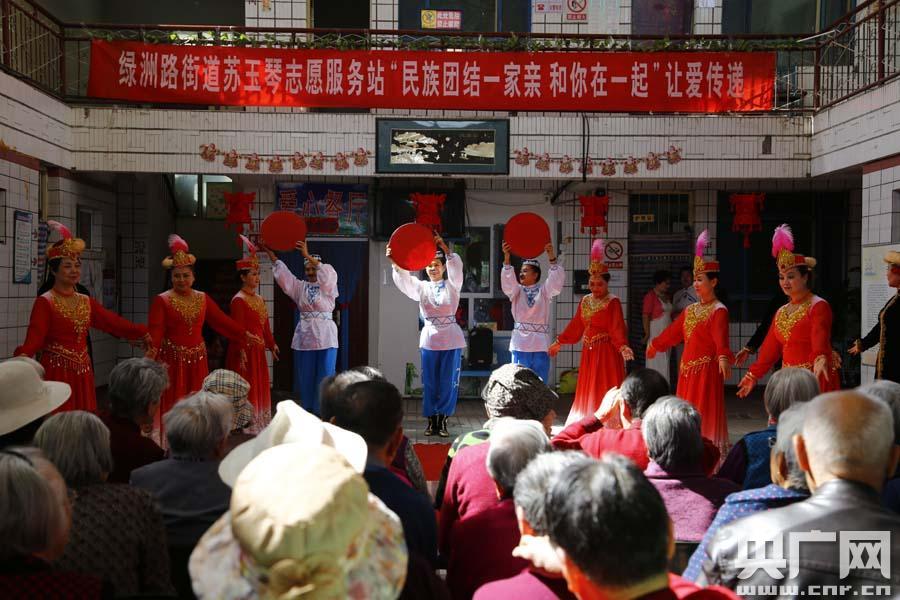 30多位身患癌癥的“紅十字抗癌協(xié)會”志愿者在給老人們表演節(jié)目 央廣網(wǎng)昌吉5月9日消息(記者張雷 昌吉臺記者陳傳松、程晾、周甜麗)新疆昌吉回族自治州將每年5月第一個星期日定為全民參與公益活動日,推動公益活動立法,構建全民參與、常態(tài)化推進公益活動新格局。兩天來,昌吉州各縣市舉辦形式多樣的全民公益日活動,倡議全民參與公益、奉獻愛心。 在昌吉市綠洲路街道蘇玉琴志愿服務站里,30多位身患癌癥的“紅十字抗癌協(xié)會”志愿者們正在給這里的老人們表演節(jié)目。 黃雪芬老人開心的告訴記者:“我78了,來了5年,挺好!志愿者到這里來慰問我們,他們給我們買的吃的,有的唱歌跳舞也有,我們非常感謝他們”。 在5月7日昌吉州首個“全民參與公益活動日”啟動儀式上,身患三種癌癥卻在公益道路上行走了近30年不停歇的蘇玉琴和其它愛心人士代表在儀式上號召全民參與公益,共同奉獻愛心。 蘇玉琴說:“在我心目中公益就是只要能幫到別人就是快樂自己,人人出來做公益,我們公益組織是一個小家庭,但是我們小家庭中有12個民族來參與公益,每個人參與到志愿服務中,我們的世界就是更美好的! 與此同時,在昌吉州各縣市街道社區(qū)、鄉(xiāng)鎮(zhèn)都開展了形式多樣的全民參與公益日活動。一直熱衷于公益愛心事業(yè)的城建出租公司組織了四十輛統(tǒng)一張貼愛心公益標志的愛心出租車參與其中,城建出租公司成立6年,參與公益免費拉載乘客13000多人/次。 愛心司機趙擁軍說:“平時營運過程中遇到老、弱、病、殘以及孕婦乘客搭車的,我都會提供免費的乘車服務。不僅是在公益日當天能夠獻愛心,在日常生活中,要把獻愛心貫穿到每一年每一天來服務于乘客! 在昌吉市建國路街道,120位朗讀者在華洋廣場開展主題為“倡導新文明 全民齊發(fā)聲 百人共朗讀”全民公益日活動,他們認為精神傳遞正能量也是參與公益的一種形式。 今年75歲的老黨員楊耘是一名退休教師,也是這次公益朗讀活動中年齡最大的一位。她對記者說:“我是教師,我從事公益活動主要從思想、從做人的品德,書里面有很多的正能量感染著我們、教育著我們怎么樣做人,怎么樣向社會傳播正能量,我退休以后搞了一個‘紅色輔導站’,給老人小孩傳播正能量,特別是年輕人,告訴他們怎么樣自強自力、怎么樣愛國、怎么樣刻苦學習闖出一條人生的路”。 昌吉市阿什里鄉(xiāng)胡阿根村冬不拉文化大院里正在舉辦全民公益日活動,臺上帥氣的哈薩克族小伙在演唱歌頌草原贊美家鄉(xiāng)的歌曲,臺下村黨支部書記 夏力肯?賽提汗坐在村民中間號召大家參與公益捐獻造血干細胞。 夏力肯?賽提汗告訴記者:“我是第二次進行造血干細胞捐獻了,剛開始家人不同意,后來我跟家人說捐獻的好處,后面家人就同意了。作為一名基層黨員干部,我經常利用升國旗和基層宣教的機會號召大家都來參與到全民公益活動中,一起來獻愛心! 目前,昌吉州公益志愿者已有7萬多人,公益服務隊從“十二五”末的142支增加到現(xiàn)在的1077支,《昌吉回族自治州全民參與公益活動條例》的出臺以及將每年五月的第一個星期日定為“昌吉州全民參與公益活動日”等措施,逐步形成“公益達人天天見、全民公益在身邊”的生動局面。 昌吉州人大常委會黨組副書記、主任索躍表示:“把我們昌吉州開展全民參與公益活動的好的經驗和做法逐步上升為一種機制和制度,通過這樣一個條例在法制化的軌道上,公益活動就變成人人公益、天天公益!