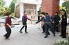 貴陽機務(wù)段開展反恐應(yīng)急演練 央廣網(wǎng)重慶5月10日消息(記者劉湛 通訊員唐吉福)為進一步增強安保人員防患意識,提高暴力突發(fā)事件的應(yīng)變、協(xié)調(diào)和處置能力,確!耙粠б宦贰备叻逭搲陂g的安全運輸生產(chǎn),5月8日,貴陽機務(wù)段開展了反恐應(yīng)急演練活動。演練還邀請了貴陽南站派出所民警進行現(xiàn)場指導(dǎo)。 上午10:00,演練正式開始。兩名不明身份人員經(jīng)門衛(wèi)安保人員查證無果,拒絕進段后,從車內(nèi)拿出菜刀、鐵棍,意圖強行入段,值班保安人員發(fā)現(xiàn)后,立即拿起反恐用具與持刀人員進行周旋,并等待后援。3分45秒后,“暴恐分子”被先后趕來的保安人員成功制服。演練結(jié)束后,貴陽南站派出所民警對演練過程進行專業(yè)評價,并重點講解了防暴叉,防護盾的正確使用方法,對演練過程中暴露出的問題進行了矯正。 據(jù)了解,為全面做好“一帶一路”國際合作高峰論壇會議期間安保工作,該段還細化制定了具體防范措施,實施站區(qū)封閉管理,加大了對油庫、檢修庫、材料庫、整備場易燃易爆、危險化學(xué)品的管理和日常檢查,同時,利用專題會、車間生產(chǎn)會、科務(wù)會,在全段范圍內(nèi)開展反恐防暴培訓(xùn),進一步增強全員反恐意識。(唐吉福攝)