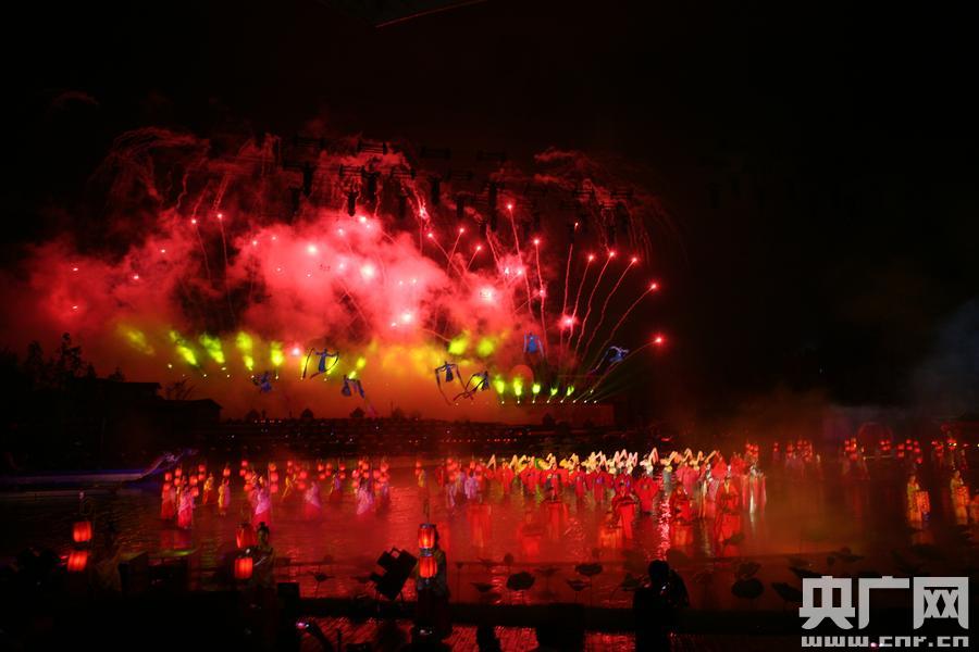 長沙首臺(tái)大型田園實(shí)景情境演出《瀏陽河上》首演 央廣網(wǎng)長沙6月27日消息(記者傅蕾 通訊員尋紅日)6月27日晚8時(shí),長沙市首臺(tái)大型田園實(shí)景情境演出《瀏陽河上》在隆平文化公園震撼開幕!耙磺穆曭阌顑(nèi),千秋沉醉到仙鄉(xiāng)”——整場演出以歌曲《瀏陽河》為主線,串聯(lián)起瀏陽河的前世與今生,暉映著千年瀏河的生命律動(dòng),將它的神奇與壯觀、悲傷與喜悅?cè)谌霘v史的生發(fā)及漫化轉(zhuǎn)變,在天、地、神、人的互動(dòng)中,啟發(fā)并感知“江?駷懕M東倒,卻輸瀏水尚能西”的九曲母親河,堅(jiān)韌、浪漫、敢為人先的根與魂。 本次演出刷新了“聲、光、影、城、河、焰”的全景情境式表演模式:3D樓宇投影、一望無際的金色麥田以及一灣蕩漾的水域,都成為了《瀏陽河上》舞臺(tái)組成部分,燈影、水影、樓影、火影、人影,整個(gè)演出現(xiàn)場交相輝映成一道最美的湖湘印象。璀璨焰火時(shí)而營造出傾瀉而下的銀色繁星,時(shí)而綻放成漢宮禮嫁中的喜慶禮花;而舞臺(tái)周邊的隆平水稻博物館,也在樓宇投影下巧妙變換各種場景,瀏陽河畔的晨夕和四季美景,都變成圖案“描繪”于館身上,讓觀眾們看得如癡如醉。 晚上8時(shí),悠揚(yáng)的樂曲響起,《瀏陽河上》正式拉開帷幕。整場演出以《星空》為序,水底星燈點(diǎn)點(diǎn),天空焰火營造出流星劃過、谷雨傾瀉的壯觀場景,光影中,伴隨著銀鈴般的長沙童謠,漁舟緩緩劃入舞臺(tái)中央,輕靈、悠遠(yuǎn)的序曲,瞬間撥動(dòng)了現(xiàn)場觀眾的心弦,觸動(dòng)了母親河在人們心底留下的印跡。 隨后,四大主題篇章演繹,結(jié)合千年瀏河歷史文化進(jìn)行精彩演繹,引導(dǎo)人們對于母親河的感悟與認(rèn)知。 第一篇章《漢宮秋月》,隨著禮祭聲響起,一群頭戴頂冠、身著白色漢服的舞者在麥浪中圍繞鼓而舞,擊鼓而歌,雄渾恢弘的《大禾禮》悠遠(yuǎn)而神圣。一副神奇的祈福之卷延展眼前,表達(dá)了千年之前瀏陽河上的人們對天地、對五谷的敬畏和對豐收的期盼。隨后,一個(gè)巨大的“囍”字綻印空中,從沃盥禮到食黍禮、合巹禮、結(jié)發(fā)禮到持手禮,漢宮禮嫁在演員們的精彩演繹中一一還原。節(jié)目以馬王堆漢文化為背景,講述西漢長沙國丞相利蒼與夫人辛追的愛情故事,重現(xiàn)楚漢文化盛況,為現(xiàn)場觀眾獻(xiàn)上了一幕震撼恢弘的瀏陽河畔的歷史人文畫卷。 第二篇章《瀏水人家》,隨著長沙山歌變奏聲起,一副“瀏陽河上圖”煥然呈現(xiàn)。歌聲流轉(zhuǎn),一群婀娜女子們背影宛如岸堤楊柳輕飏,自成一畫。喊著瀏陽河號(hào)子的船工、洗夏布的漢子和穿針引線的湘繡繡娘,伴隨一曲俏皮辣利的《辣椒曲》,共同演繹靈俏優(yōu)美的《出水芙蓉》。 第三篇章《杜鵑花開》里,伴隨“獨(dú)立寒秋,湘江北去,桔子洲頭……”,《沁園春?長沙》的讀頌聲中,舞者手執(zhí)紅色油紙傘翩翩起舞,水中倒影與油紙傘相映成趣,近百把油紙傘亮如同一堵紅色的光墻映襯著舞者。而在高空水幕中,杜鵑花綻放,綿延不斷的情懷達(dá)到高潮。重現(xiàn)驕楊之戀“執(zhí)子之手,縱情天下。恰同學(xué)少年,風(fēng)雨無悔”的曠世戀歌。 第四篇章《天賜之美》,伴隨一段長沙彈詞吟唱,舞臺(tái)中央,一幕極具煙火氣息的長沙百年老街民俗景象躍然呈現(xiàn)!独苯犯琛芬魳菲穑倌昀辖謽巧蠘窍碌睦泵米与S之一段浪漫又熱情似火的抖辣椒群舞,盡顯湘妹子的火辣性格和辣利味道。鼓聲隨之響起,空中的龍舟鼓舞震徹天際,一群的龍舟漢子握槳而上,水上的龍舟配合鼓點(diǎn)競渡,一片浪遏飛舟;遠(yuǎn)處的稻田上彩帶飛舞,瀏陽河上生機(jī)勃勃的景象依次展開。意喻著瀏陽河從過去到現(xiàn)在的精彩蝶變。 四大篇章,數(shù)十個(gè)美輪美奐的場景,詮釋了一個(gè)以禮儀為韻致的瀏陽河、以天籟為律動(dòng)的瀏陽河、以水墨為底色的瀏陽河、以鄉(xiāng)愁為歸處的瀏陽河。全劇通過焰、水、俗、雅等元素充分展示了長沙厚重的文化名城、秀美的山水洲城、創(chuàng)新活力之城的風(fēng)采與魅力。 整場演出最為動(dòng)人的,正是那一份厚重的瀏河情懷。歌曲《瀏陽河》,童謠《月亮粑粑》,以及長沙彈詞,長沙山歌,焰火等非遺元素,每一處細(xì)節(jié)的處理,都彰顯了最地道的瀏河韻致。 在演出的最后,隨著熟悉的《瀏陽河》旋律響起,演出步入尾聲,臺(tái)上演員方陣齊聲高唱,臺(tái)下觀眾紛紛合著節(jié)拍同唱《瀏陽河》。說不完的故事、道不盡的快樂、生活中的理想都在這里凝結(jié),仿佛此刻便是共同的鄉(xiāng)愁歸處。無數(shù)焰火笑臉在空中全情釋放,將整場演出推向高潮。 向世界講述瀏陽河九道灣的動(dòng)人故事!不負(fù)天賜之美,焰遇最美長沙—《瀏陽河上》是芙蓉區(qū)瀏陽河文旅產(chǎn)業(yè)帶建設(shè)的一個(gè)重要文化項(xiàng)目,也是長沙市首臺(tái)大型田園實(shí)景情境演出,今后將有望作為長沙的文化名片,在隆平文化公園的常態(tài)化演出并定期巡演,成為長沙市文化、旅游產(chǎn)業(yè)新名片。