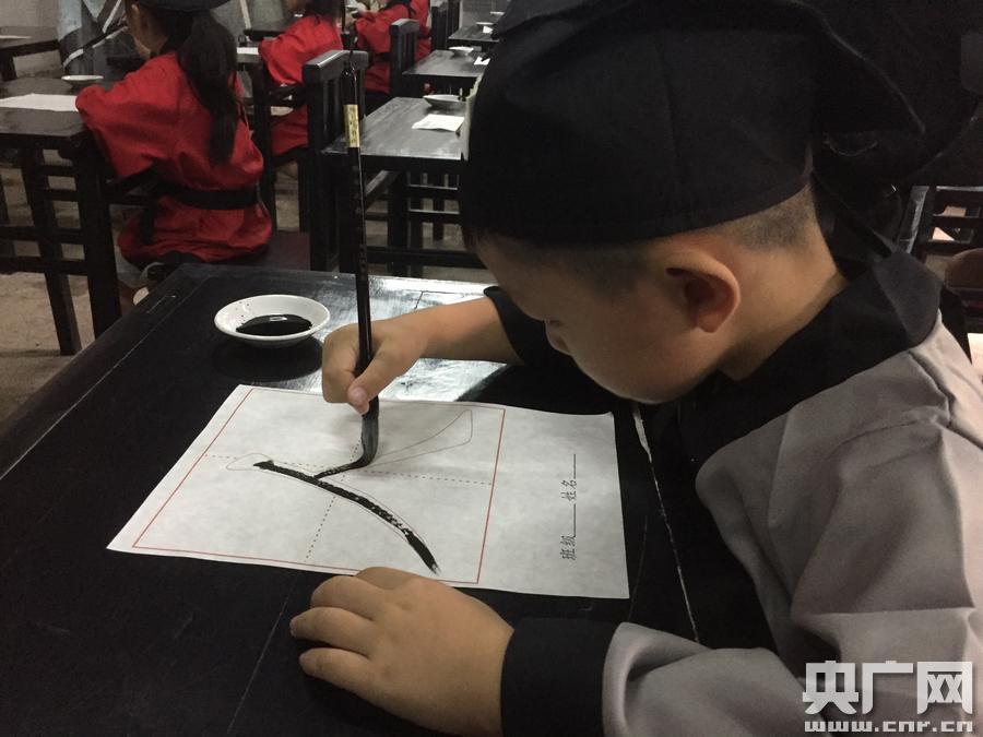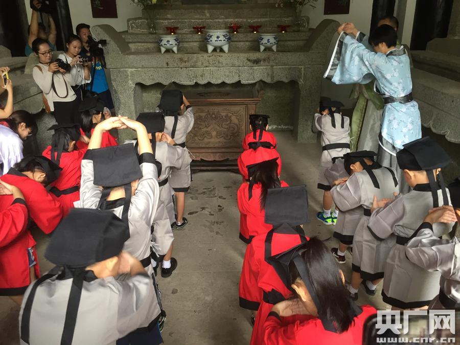 開學(xué)第一課:江西白鹿洞書院迎來新生入學(xué)開筆禮活動 央廣網(wǎng)九江9月1日消息(記者謝元森 九江臺記者張國華)“冠必正,鈕必結(jié)、襪與履、俱緊切……”今天是中小學(xué)開學(xué)第一天,在中國的四大書院之首的白鹿洞書院,伴隨著朗朗讀書聲,九江雙峰小學(xué)一年級的小朋友以開筆禮活動開啟新生入學(xué)第一課。他們身著漢服,按照古代的開筆議程,先行拜叩先師孔子,再開展點(diǎn)朱砂、開天眼的朱砂啟智、擊鼓鳴志活動。在明倫堂,學(xué)生們在老師的示范下以“人”字為啟蒙描紅,以從小樹立互相理解、互相支持、互相幫助,才能構(gòu)成和諧社會的價值觀。 -