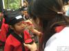 小朋友認(rèn)真地學(xué)寫“人”字 -