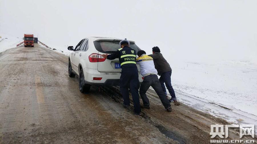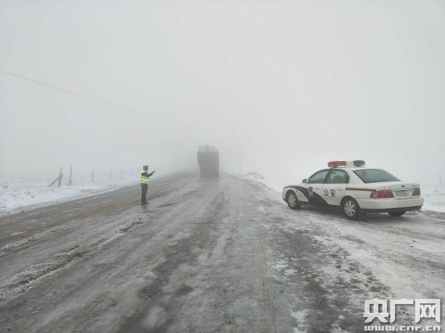 交警在積雪路段疏導交通 央廣網西寧10月9日消息(記者 葛修遠)受冷空氣影響,從10月9日夜間開始,青海省境內海南、海北、玉樹、黃南、海東、西寧等地陸續(xù)出現不同程度降雪,大霧天氣,氣溫驟降。降雪導致部分路段出現積雪結冰,給節(jié)后上班造成了不同程度影響。 海東市化隆、互助、平安等地降雪嚴重,省道202線平安至循化大李加山段、省道203線、威北公路、樂都北山等路段均有降雪。海北州,國道227線105km一109km有間斷性積雪結冰;國道227線181公里處(景陽嶺)路面結冰;國道315線德州埡口120至130公里處,路面結冰,有濃霧,國道227線景陽嶺埡口181公里處,因下雪路面結冰,造成50余輛大小車輛滯留。西寧市周邊高速公路受降雪影響平阿高速公路青沙山段雪勢較大,并伴有大霧能見度低,路面積雪結冰,車輛通行受到影響。 針對這一安全風險,青海交警總隊向社會發(fā)出安全提示:雨雪天行車,要降低車速,適當增大跟車距離,減少變道超車,遇緊急情況提前采取制動、減速措施;出行前應提前配備防滑鏈等防滑設備;及時關注天氣情況,盡量避免雨雪天氣出行。 為確保交通安全,青海全省各級公安交管部門立即啟動應急預案和措施。青海交警總隊立即向各地發(fā)出《惡劣天氣預警》,要求各地一是加強冰雪路段的巡邏管控和疏導;二是對存在嚴重安全隱患的路段及時通報運管部門暫時停止客運班線;三是迅速協(xié)調公路部門加強對冰雪路面的處置;四是通過微信微博及短信向社會發(fā)布路況信息。各地迅速應對,加強勤務安排。 青海全省共出動警力427人次,警車159輛次,全省未發(fā)生因冰雪道路的人員傷亡交通事故,未發(fā)生長距離大面積擁堵。