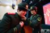 一名警官為直招士官整理軍裝(央廣網(wǎng)發(fā) 馬士寶攝) -