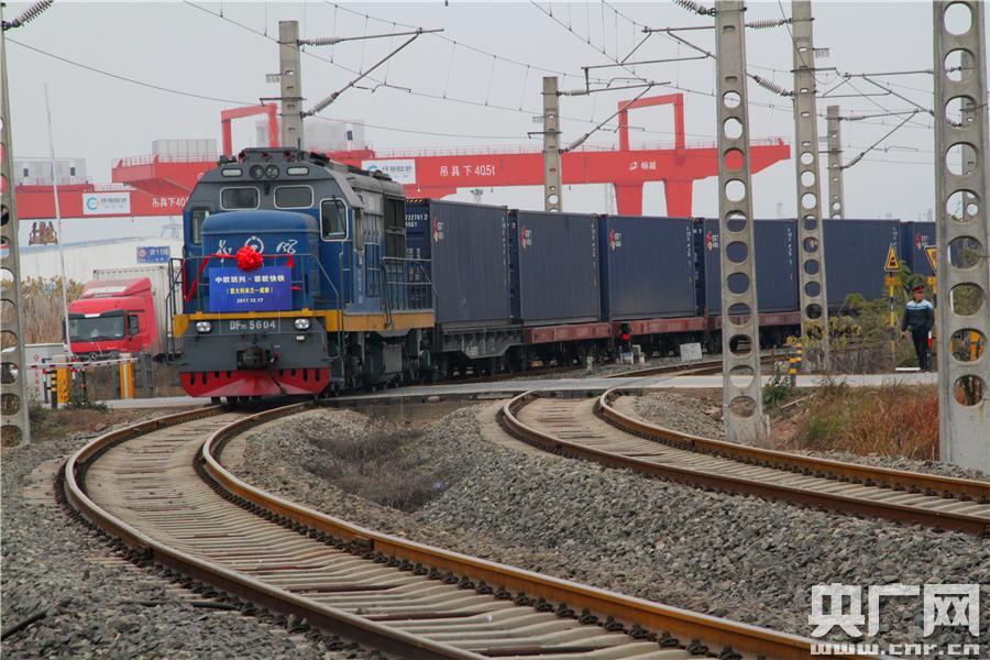中歐班列·蓉歐快鐵(意大利米蘭-成都)首趟測(cè)試班列抵蓉(央廣網(wǎng)記者 賈宜超 攝)
