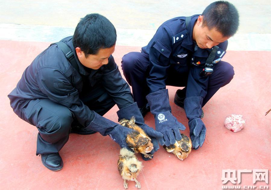 被救助的國家二級保護(hù)動物倉鸮(央廣網(wǎng)發(fā) 郭麗娟 攝) 央廣網(wǎng)普洱1月5日消息(記者李騰飛 通訊員郭麗娟 常國軒)1月2日,云南省寧洱縣警民聯(lián)手成功救助了3只國家二級保護(hù)動物小幼鸮。 當(dāng)天上午10時左右,寧洱縣森林公安局接到寧洱縣同心鎮(zhèn)林業(yè)服務(wù)中心送來的三只被雨水淋透的“猴面鷹”。2日凌晨,同心鎮(zhèn)那柯里的一位李姓村民到農(nóng)田干活時,途經(jīng)同心治超點(diǎn)公路邊時,聽見路邊排水溝里發(fā)出呼呼的響聲。他尋聲去找,發(fā)現(xiàn)水溝里窩著三個貓頭鷹在瑟瑟發(fā)抖。李大哥找來紙箱把它們裝好,準(zhǔn)備拿回家救助,恰巧途中遇到了正在林區(qū)巡查的林業(yè)服務(wù)中心工作人員,后轉(zhuǎn)交至森林公安。 被送到到縣森林公安局時,三個小家伙躲在紙箱里非常虛弱,體型較小的一只已經(jīng)奄奄一息,另一只的喙也受了傷。民警們立即用干毛巾將淋濕的“猴面鷹”擦干,使用消毒水對傷口進(jìn)行清創(chuàng),并買來了鮮肉和葡萄糖水一點(diǎn)一點(diǎn)的給它們喂食。 經(jīng)過民警一天的精心照顧,三個小家伙精神狀態(tài)有所好轉(zhuǎn),慢慢地開始自主進(jìn)食。 經(jīng)專業(yè)鑒定,三只鳥學(xué)名叫倉鸮,當(dāng)?shù)厝擞址Q猴面鷹、猴頭鷹等,是夜行猛禽,屬于國家二級保護(hù)動物。 鑒于這三只倉鸮均為幼鳥,且森林公安不具備飼養(yǎng)條件,寧洱縣森林公安局于1月3日上午聯(lián)系并將三只倉鸮送往普洱市野生動物收容救助中心進(jìn)行進(jìn)一步救助。