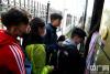 大巴車隊在西寧火車站外接學生回玉樹 -