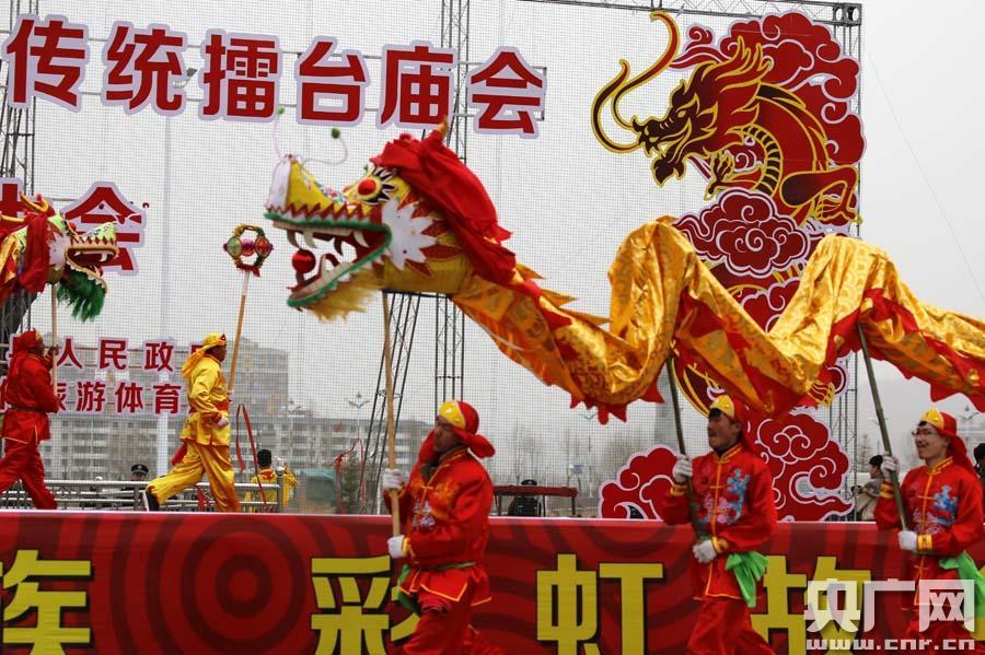舞龍舞獅鬧社火(央廣網(wǎng)記者 張雷 攝) -