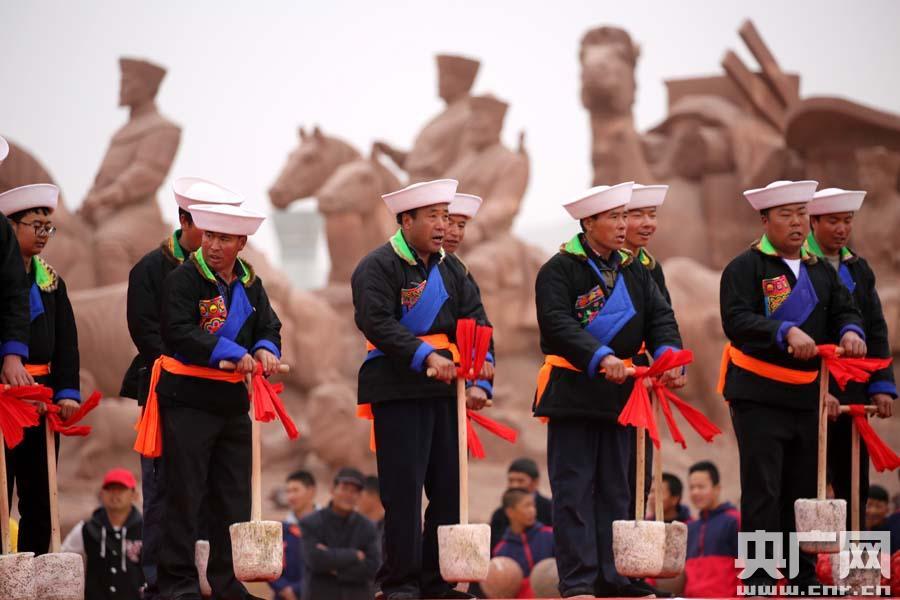 土族“打夯”歌舞(央廣網(wǎng)記者 張雷 攝) -