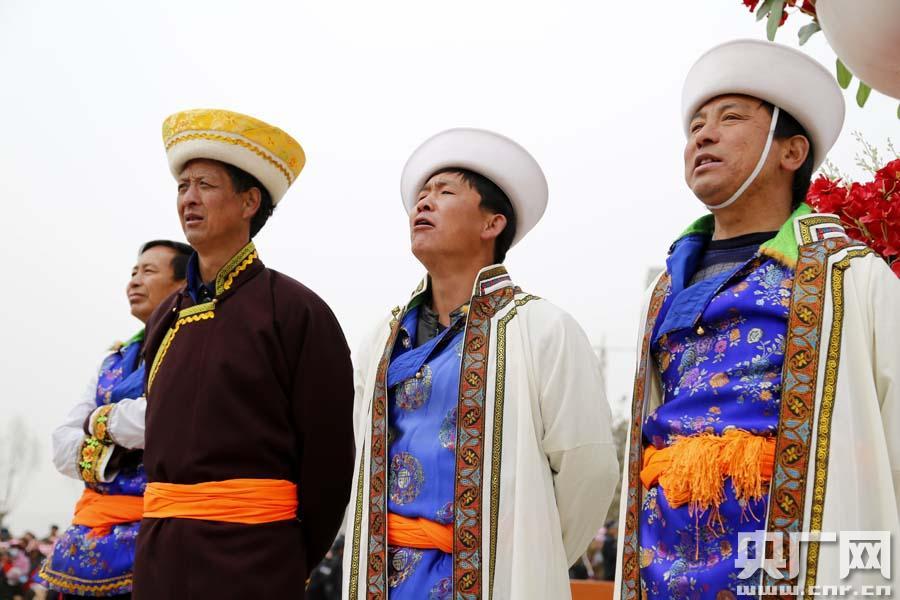 身著民族服飾觀看演出的土族男子(央廣網(wǎng)記者 張雷 攝)