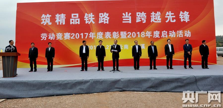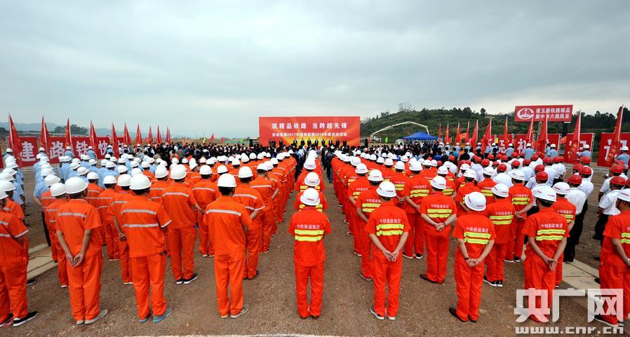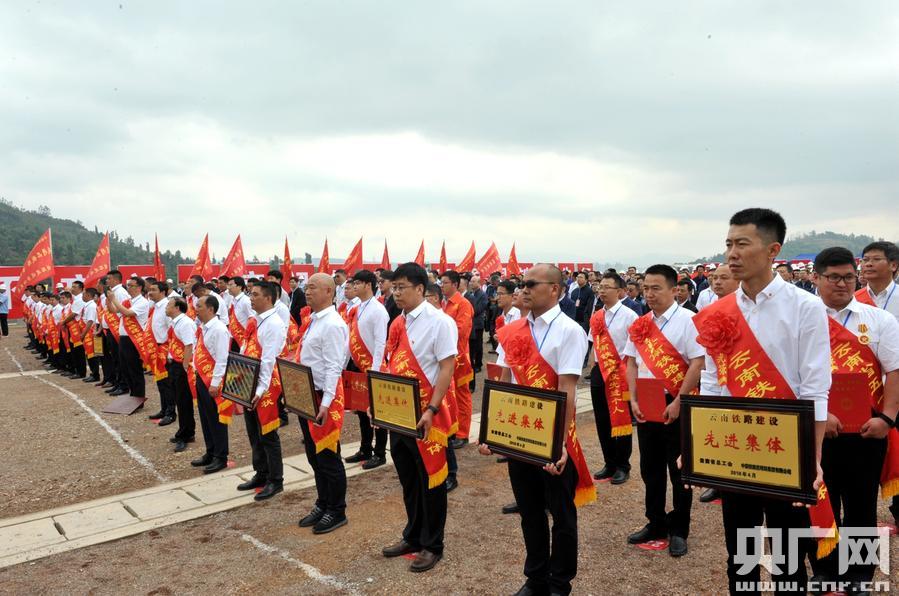 云南省“筑精品鐵路 當(dāng)跨越先鋒”勞動(dòng)競(jìng)賽啟動(dòng)儀式現(xiàn)場(chǎng)。(央廣網(wǎng)發(fā) 張偉明攝) 央廣網(wǎng)昆明4月28日消息(記者李健飛 通訊員張偉明)記者今日(4月28日)從中國(guó)鐵路昆明局集團(tuán)有限公司滇南鐵路建設(shè)指揮部獲悉,位于云南省玉溪市的在建中老國(guó)際通道玉磨鐵路研和站路基場(chǎng)坪土石方填筑基本完成,路基附屬工程全面展開,車站有望在年內(nèi)正式投入使用,這將是中老鐵路首個(gè)投入使用的大型貨運(yùn)站。 云南省人民政府、云南省總工會(huì)和中國(guó)鐵路昆明局集團(tuán)有限公司及40多家鐵路建設(shè)施工單位于4月27日在研和站舉行云南省“筑精品鐵路 當(dāng)跨越先鋒”勞動(dòng)競(jìng)賽2017年度表彰暨2018年度啟動(dòng)活動(dòng),通過(guò)勞動(dòng)競(jìng)賽的方式,大力弘揚(yáng)勞模精神和工匠精神,動(dòng)員參建各方爭(zhēng)創(chuàng)一流,比學(xué)趕超,奮勇爭(zhēng)先,加快云南“八出省五出境”鐵路網(wǎng)建設(shè),持續(xù)掀起鐵路建設(shè)高潮,加快把與周邊國(guó)家互聯(lián)互通的“接口”做好,更好地服務(wù)云南跨越式發(fā)展和“一帶一路”建設(shè)。 據(jù)統(tǒng)計(jì),2017年云南鐵路建設(shè)完成投資 207.3億元,昆明東站三級(jí)六場(chǎng)、昆明南站至昆明站客車聯(lián)絡(luò)線投產(chǎn)運(yùn)營(yíng),服務(wù)“一帶一路”的大(理)臨(滄)、玉(溪)磨(憨)、大(理)瑞(麗)等鐵路轉(zhuǎn)入施工高峰,廣(通)大(理)、永(仁)廣(通)鐵路進(jìn)入攻堅(jiān)期。27日上午,云南省政府和云南省總工會(huì)在競(jìng)賽活動(dòng)啟動(dòng)儀式上,對(duì)2017年參與云南鐵路建設(shè)業(yè)績(jī)突出的集體或個(gè)人進(jìn)行了表彰,分別授予他們?cè)颇鲜∥逡粍趧?dòng)獎(jiǎng)狀、云南省工人先鋒號(hào)、云南省鐵路建設(shè)先進(jìn)集體、云南省五一勞動(dòng)獎(jiǎng)?wù)潞驮颇翔F路建設(shè)先進(jìn)個(gè)人等榮譽(yù)稱號(hào),并號(hào)召鐵路建設(shè)各部門、各單位合力攻堅(jiān)、群策群力,高質(zhì)量推進(jìn)云南在建鐵路項(xiàng)目,為云南建成面向南亞?wèn)|南亞輻射中心提供強(qiáng)有力的交通基礎(chǔ)設(shè)施保障。 帶著喜悅的心情,受表彰的先進(jìn)集體和個(gè)人觀摩了由中鐵六局承建的研和站,饒有興趣地了解車站建設(shè)情況,積極為云南鐵路建設(shè)出良謀獻(xiàn)良策。 中鐵六局路橋公司玉磨鐵路項(xiàng)目分部經(jīng)理毛朝勛介紹,研和站分別連接中越國(guó)際通道昆玉河鐵路和中老國(guó)際通道玉磨鐵路,是中越中老國(guó)際鐵路通道的重要貨運(yùn)樞紐。于2016年5月開工,計(jì)劃2018年年底投入運(yùn)營(yíng),目前研和車站路基場(chǎng)坪土石方挖填完成共計(jì)1000余萬(wàn)方,已經(jīng)基本填筑完成,車站主體工程將于6月底完工。 研和站占地近2000畝,設(shè)列車到達(dá)和始發(fā)線正線8條,預(yù)留5條,配有集裝箱、散堆裝貨物、商品汽車和笨大貫通式、怕濕貨物線路及貨場(chǎng)。車站設(shè)計(jì)年貨運(yùn)量近期到發(fā)180萬(wàn)噸,遠(yuǎn)期到發(fā)270萬(wàn)噸。 中國(guó)鐵路昆明局集團(tuán)有限公司相關(guān)負(fù)責(zé)人介紹,今年云南鐵路統(tǒng)籌建設(shè)資源、管理技術(shù)形成攻堅(jiān)合力,全年鐵路建設(shè)投資計(jì)劃安排250億元。今年一季度,云南省完成鐵路建設(shè)投資 51.02億元,占全年計(jì)劃投資的20.4%。 黨的十八大以來(lái),云南鐵路完成投資1253億元,投資規(guī)模是上一個(gè)5年的2.2倍。在近期國(guó)家批復(fù)的《中長(zhǎng)期鐵路網(wǎng)規(guī)劃》中,云南省列入中長(zhǎng)期規(guī)劃的項(xiàng)目有重慶至昆明高鐵、南昆鐵路擴(kuò)能改造、攀枝花至大理、蒙自至文山鐵路等18個(gè)項(xiàng)目,建設(shè)規(guī)模3485公里,總投資2965億元,規(guī)劃建設(shè)規(guī)模按省份劃分位列全國(guó)第二。