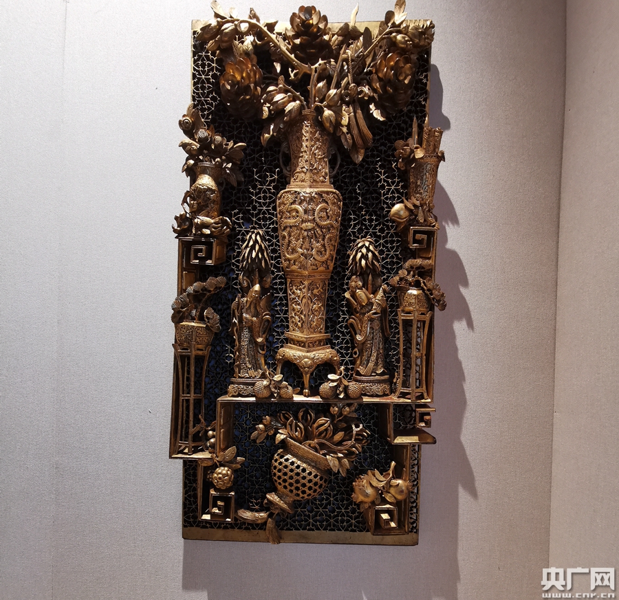 “不辭長(zhǎng)作嶺南人——荔枝文化展”在廣東省博物館開幕。圖為清通雕博古紋窗花(央廣記者 鄭澍 攝)