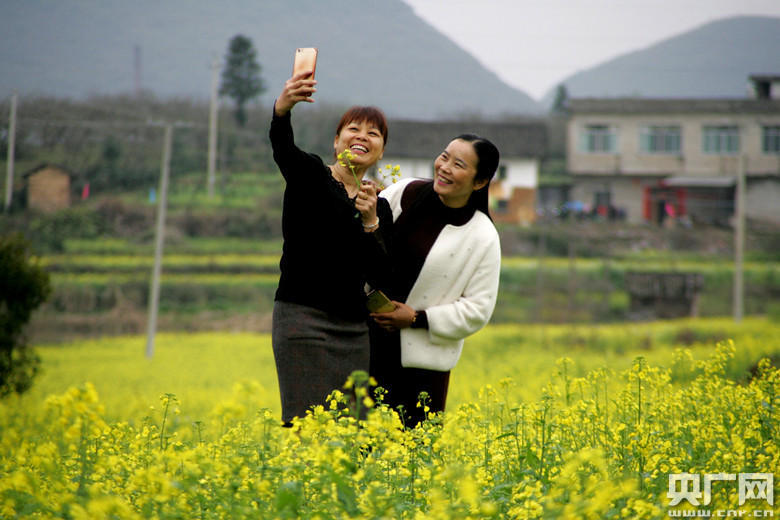游人在廣西桂林市恭城瑤族自治縣平安鎮(zhèn)虎溪村踏春賞花(央廣網發(fā) 通訊員供圖)