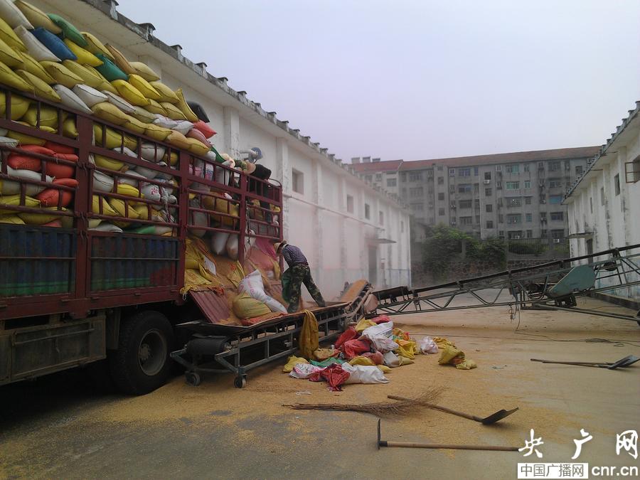 岳陽(yáng)市嚴(yán)格按照國(guó)家最低保護(hù)價(jià)132元/百斤的價(jià)格敞開(kāi)收購(gòu)農(nóng)民余糧,為國(guó)家糧食安全和糧農(nóng)增收做出了積極貢獻(xiàn)。 (央廣網(wǎng)記者 張毛清 攝)
