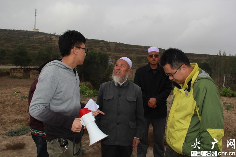 攝制組與陳志明老人討論劇情(央廣網(wǎng)發(fā) 李丁 攝)