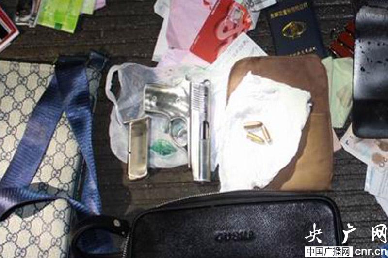 圖為查獲的仿軍用六四式手槍1支、子彈3發(fā)(央廣網(wǎng)發(fā) 沈積軍攝)