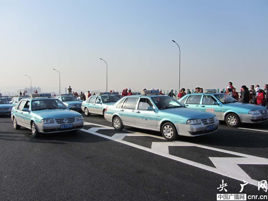 “‘田’字型快速路全線通車!”隨著烏魯木齊市委書記朱海侖的宣布,近百輛出租車馳騁在新建成的西外環(huán)橋面,感受高架時代的城市快速度!出租車司機劉國貿高興地說:“通車了以后,大家都高興,我們開車的能多賺點錢,坐車的人也省了好多時間,特別好!”