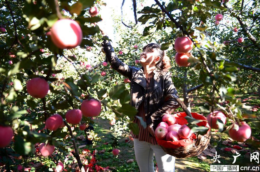 游客在采摘有機(jī)蘋果(央廣網(wǎng)發(fā) 賈德勇 攝)