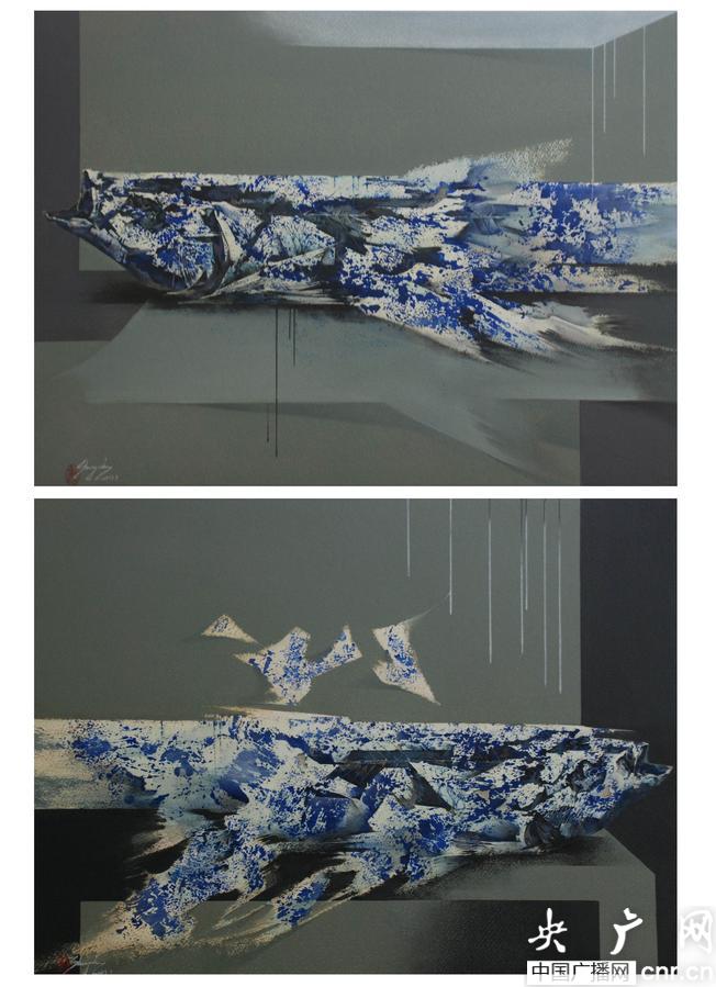 作品是以“魚”為主題,通過水彩畫濕畫法,運(yùn)用丙烯與水彩結(jié)合罩染完成。(陳恬立 攝)