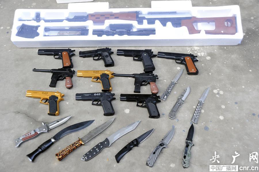 查獲的管制刀具和仿真槍(央廣網(wǎng)發(fā) 馮忠海 攝)