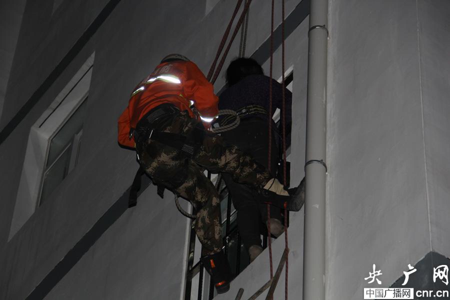 當(dāng)?shù)叵廊藛T5分鐘趕到,立即救援,從樓上鋪設(shè)安全繩,救援人員小心靠近輕生婦女,順利地將安全繩系在了她的腰間。十分鐘后成功將她安全救護(hù)到一樓。這名輕生婦女幸運(yùn)脫險(xiǎn),只有手臂受輕傷。