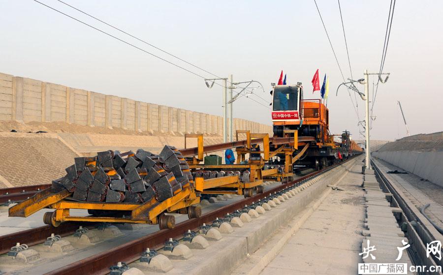 央廣網(wǎng)鄯善11月16日消息(記者孫濤 通訊員張永恒) 11月16日中午12點(diǎn),隨著蘭新鐵路第二雙線新疆段最后500米鐵軌鋪軌完工,目前世界上一次性建設(shè)里程最長(zhǎng)的高速鐵路新疆段正線鋪軌工作已全面完工,預(yù)計(jì)于2014年年底投入正式運(yùn)營(yíng)。