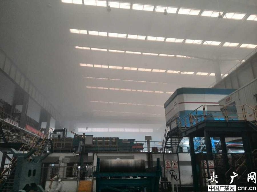 青海平安高精鋁業(yè)廠房?jī)?nèi)濃煙彌漫 (央廣網(wǎng)發(fā) 張雕 攝)