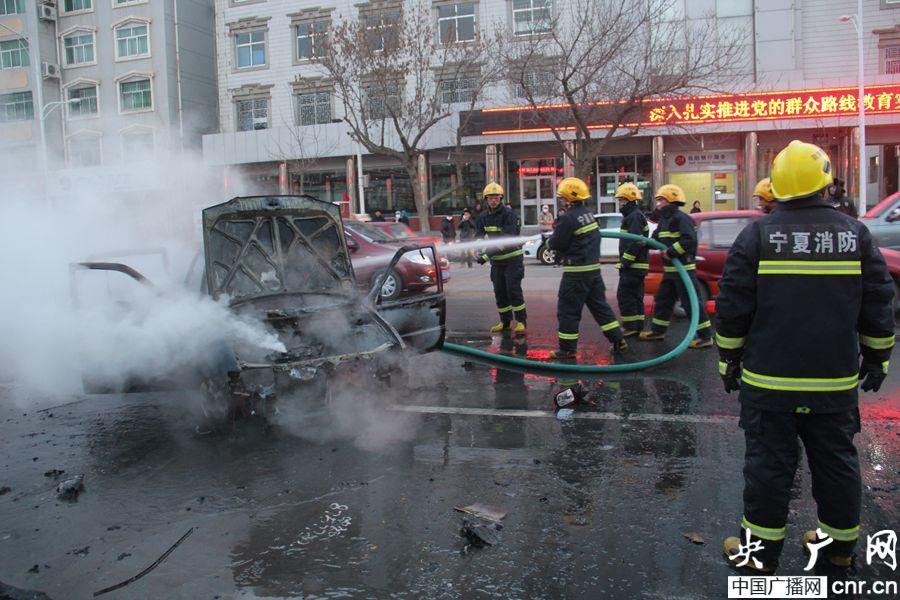 央廣網(wǎng)銀川12月12日消息(記者許新霞 通訊員丁宜師)今天07時(shí)28分,固原市原州區(qū)中山北路六小門前一輛改裝用氣甲醇轎車突然起火,火勢(shì)猛烈,并伴有大量濃煙。固原消防特勤中隊(duì)接到報(bào)警后,迅速出動(dòng)1車8人趕往現(xiàn)場(chǎng)救援。