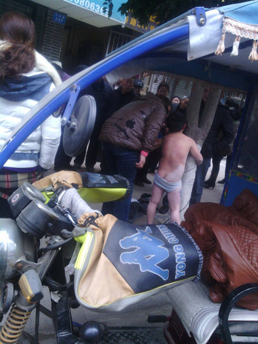 2013年12月12日,四川南充市高坪區(qū)白塔路,在眾目睽睽之下,一名男子將小男孩的衣服扒光,在5攝氏度的低溫中綁在樹上暴打。