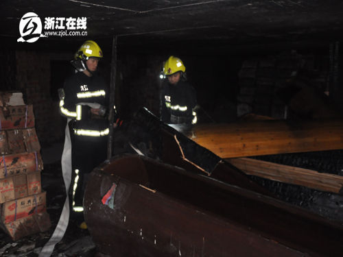 經(jīng)過1個多小時的緊張撲救,大火最終被撲滅。消防人員清理現(xiàn)場,除了4口棺材被燒毀之外,其余的三四十口棺材均完好無損,棺材里面沒有東西。