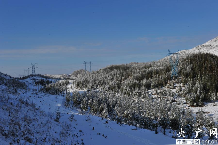 央廣網(wǎng)貴陽12月17日消息(記者孟海 通訊員王明科 王明筠 全贊融)刺骨的寒風,紛飛的雪花,晶瑩的霧凇漫山遍野。12月15日,在貴州威寧縣梅花山上,傳來了陣陣“咔嚓、咔嚓”響,威寧供電局金鐘供電所6名員工正冒雪行走在巡線路上。