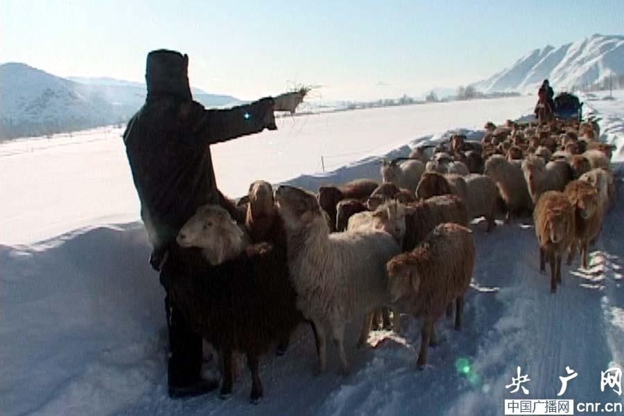 阿勒泰地區(qū)富蘊(yùn)縣畜牧獸醫(yī)站站長(zhǎng)恰布旦介紹:針對(duì)這次降溫降雪,我們用了兩天時(shí)間去了解克仔勒希力克鄉(xiāng)、吐爾洪鄉(xiāng)和庫(kù)爾特鄉(xiāng)牧民牲畜過冬情況,我們的獸醫(yī)也在冬牧場(chǎng)隨時(shí)監(jiān)測(cè)牲畜疾病,現(xiàn)在我們冬牧場(chǎng)儲(chǔ)備了三百噸飼草料,如果繼續(xù)降溫降雪,牧民就能使用這些飼草料。