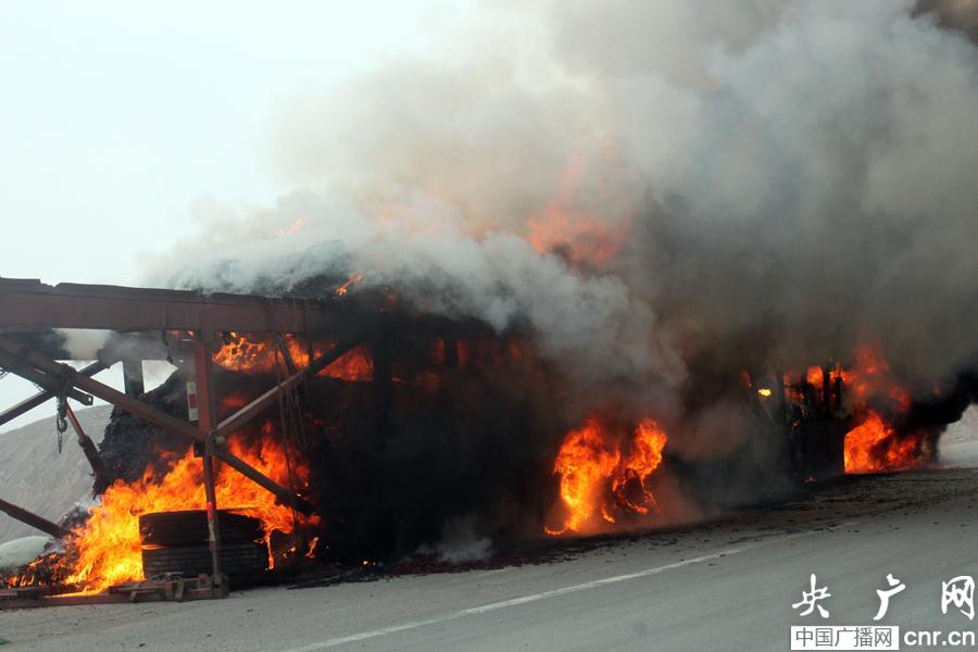 央廣網(wǎng)蘭州1月13日消息(記者焦健 通訊員方矩)一輛車牌為陜AG1790掛的30米加長貨車,行駛在國道310線甘肅省天水市麥積區(qū)伯陽鎮(zhèn)保安村段時突然起火,消防官兵經(jīng)過近四小時的不懈努力,將大火終撲滅。