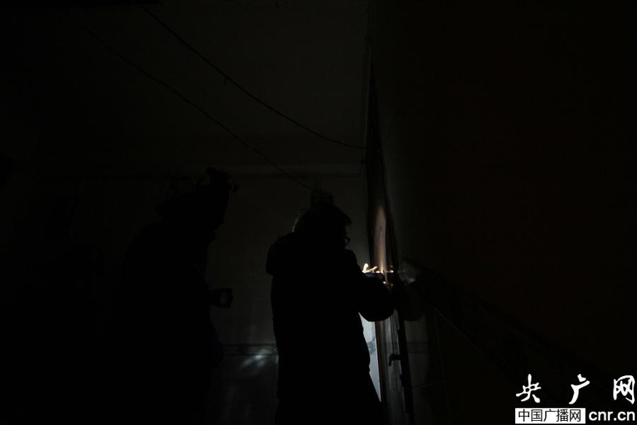 南寧市良慶區(qū)某小區(qū)內(nèi),執(zhí)法人員欲透過魚眼向房?jī)?nèi)窺視。通過此前的踩點(diǎn),該出租房被列為搜查對(duì)象。(央廣網(wǎng)記者 張壘 攝)
