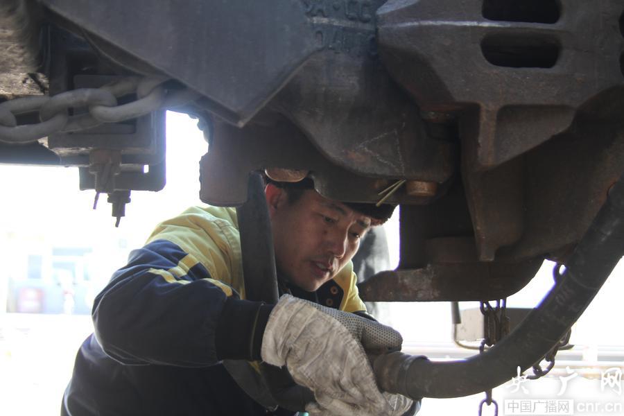 馬師傅說(shuō),調(diào)車(chē)員的活,一年四季沒(méi)有節(jié)假日,最忙的就數(shù)春運(yùn)了,只要有車(chē)走,調(diào)車(chē)員就風(fēng)里來(lái)雨里去的從不歇腳:“頂風(fēng)是最冷的,風(fēng)就跟刀似得。穿著皮襖皮褲,開(kāi)始作業(yè)的時(shí)候熱得全身都是汗。等作業(yè)完了,站在那5分鐘就把你凍透了,特別冷!凍得硬硬邦邦的,像穿了盔甲一樣是,特別的沉,特別難受。”