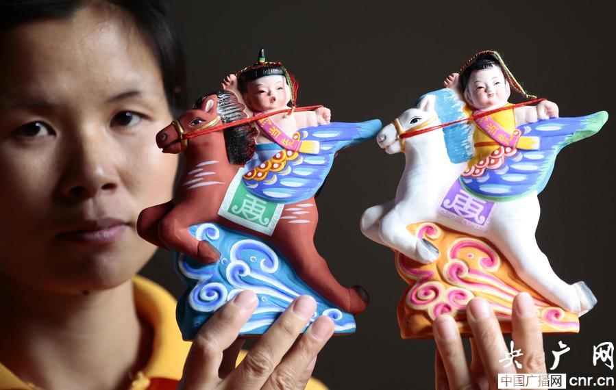 據(jù)介紹,這對(duì)由工藝美術(shù)大師喻湘蓮女士設(shè)計(jì)的名為“一馬當(dāng)先福娃”泥塑作品,將民間傳統(tǒng)福娃的形象和馬的形象融合,色彩艷麗,神采奕奕,其中男孩騎赤兔寶馬,女孩騎白龍飛馬,福娃手抓韁繩,好比跨山河,穿云海,虎虎生風(fēng),疾馳而行,寓意策馬揚(yáng)鞭,積極進(jìn)取,力爭(zhēng)美好生活的精神面貌。