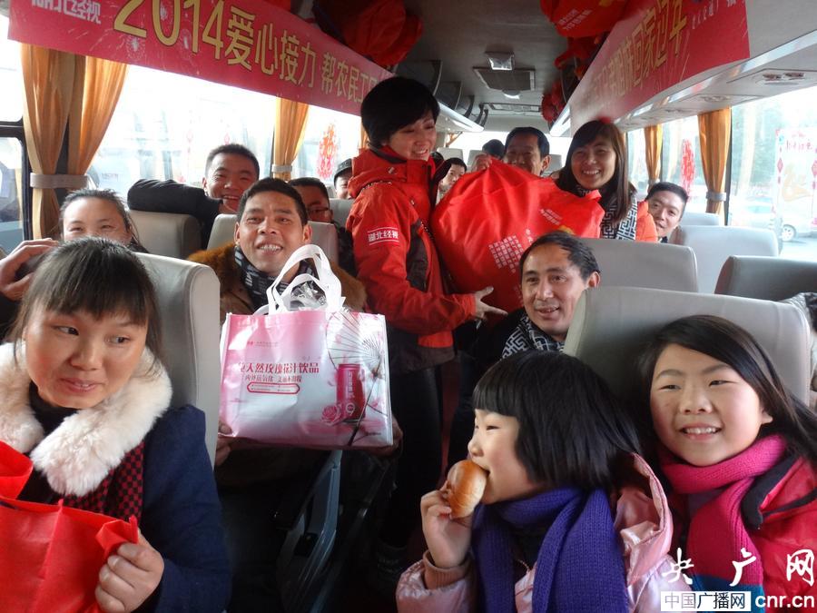“送農(nóng)民工兄弟姐妹回家過年”活動(dòng)是由湖北廣播電視臺(tái)聯(lián)合湖北省總工會(huì)、湖北省婦聯(lián)等多部門開展,已經(jīng)連續(xù)舉辦第三年。湖北經(jīng)視總監(jiān)鄧海說,今年的活動(dòng)時(shí)間歷時(shí)一個(gè)月,時(shí)間更長(zhǎng);通過專列、大巴、愛心車隊(duì)完成,動(dòng)員社會(huì)各界志愿者參與,形式更多。今年將有望幫助30萬農(nóng)民工返鄉(xiāng)過年。