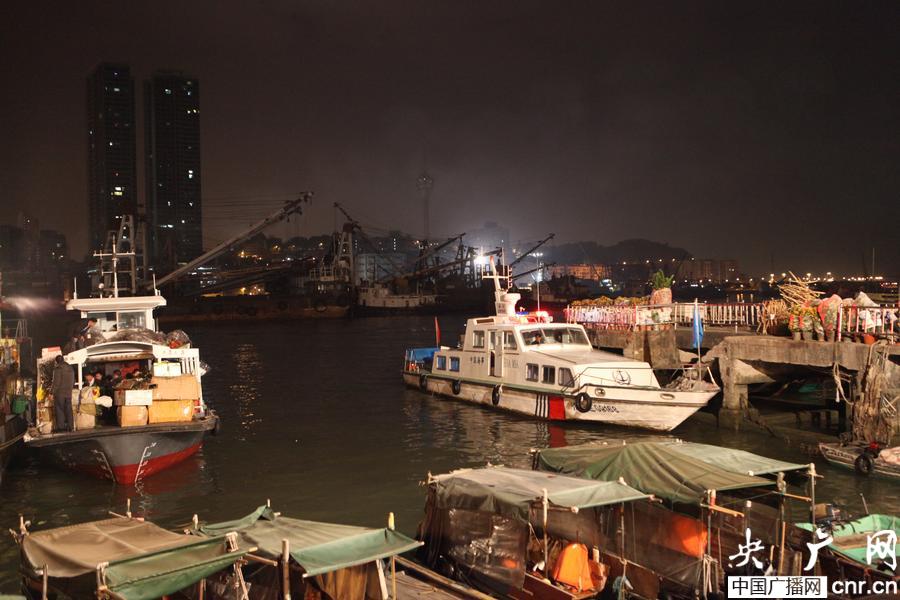 凌晨的濠江江面泊船密布,“花婆船”和送人艇只能在這些停泊在江面的船舶中穿行,不時(shí)還有其他船只穿行其間。從凌晨4點(diǎn)多, 7名海事執(zhí)法人員和一艘海巡船就已抵達(dá)灣仔碼頭,他們協(xié)助“花婆船”的裝載與航行,叮囑船上人員穿著救生衣、注意避讓,要求船員嚴(yán)守規(guī)定,杜絕超載航行、人貨混載、船首超越航行等違規(guī)行為。在海事執(zhí)法人員的指揮下,濠江水上交通依然保持安全有序。
