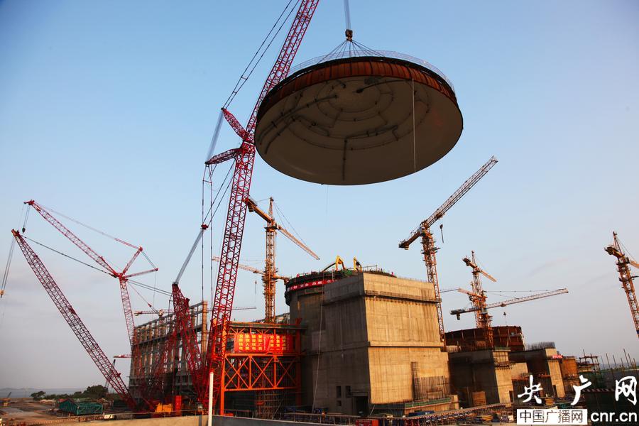防城港核電站的一號(hào)核島穹頂?shù)跹b(央廣網(wǎng)發(fā) 防城港核電站供)