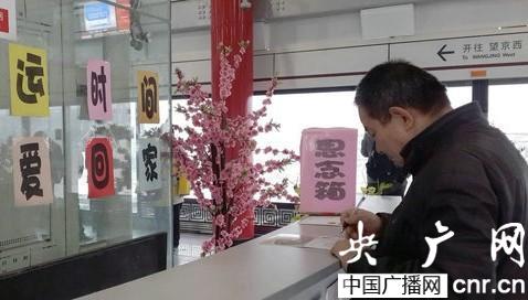 央廣網(wǎng)北京1月27日消息(記者李文蕊 通訊員孫立杰)春節(jié)是團(tuán)圓的日子,春運(yùn)也是軌道交通最繁忙的階段之一,在為攜帶著大包小包回家過年的乘客服務(wù)的同時(shí),北京地鐵員工也考慮到了因?yàn)楦鞣N原因不能回家的乘客,從臘月廿三到正月十五,每天10點(diǎn)至15點(diǎn),乘客可以在15號(hào)線后沙峪站站臺(tái)層免費(fèi)領(lǐng)取明信片,現(xiàn)場填寫完后投入車站設(shè)立的“思念箱”內(nèi),地鐵員工會(huì)定期將明信片郵寄至目的地址,將乘客的祝福送到遠(yuǎn)方的家中。