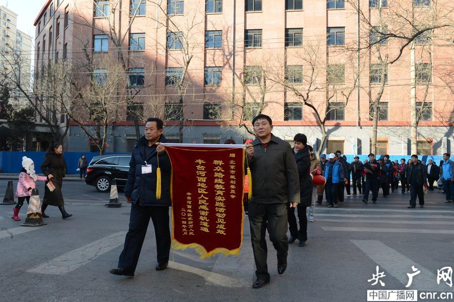 群眾代表向北京市規(guī)劃委贈送感謝信和錦旗(央廣網(wǎng)發(fā) 魯忠獻 攝)