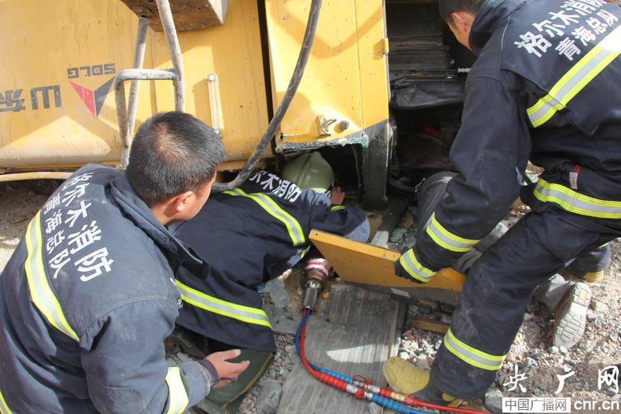 據(jù)悉,事發(fā)地為格爾木市開(kāi)發(fā)區(qū)東出口收費(fèi)站外30公里處,事故發(fā)生地距公路仍有5公里路程,且全部為沙漠便道,搶險(xiǎn)救援消防車(chē)等大型車(chē)輛無(wú)法進(jìn)入,救援官兵只能攜帶部分破拆和救援器材換乘越野車(chē)輛向事發(fā)地點(diǎn)進(jìn)發(fā),由于道路砂質(zhì)松軟,車(chē)輛只能慢速行駛。到達(dá)現(xiàn)場(chǎng)后消防官兵發(fā)現(xiàn)一輛大型鏟車(chē)“四腳朝天”,墜翻在一小沙坡下方,駕駛員被壓在近7噸重的鏟車(chē)下面,可用的救援空間十分狹小。