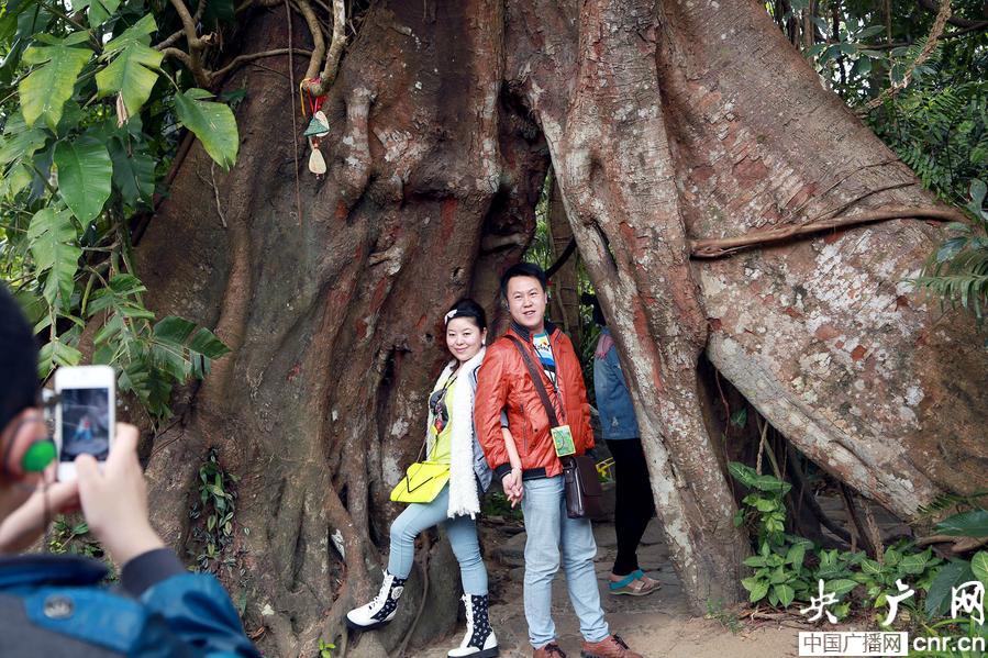央廣網(wǎng)海口2月14日消息(記者許云 通訊員馬磊斌 胡立前)2月14日,中國元宵節(jié)巧遇西方情人節(jié),眾多游客走進(jìn)海南呀諾達(dá)景區(qū)游山玩水,樂享天然氧吧,共度浪漫溫馨情人節(jié)。當(dāng)天上午,記者在景區(qū)哇哎嚕(海南話:我愛你)觀海平臺、千年夫妻榕、幸福天道、等寓意愛情的景點發(fā)現(xiàn)大批情侶聚集,開心的與充滿愛情元素的景觀自拍合影,大曬幸福,享受甜蜜休閑時光。