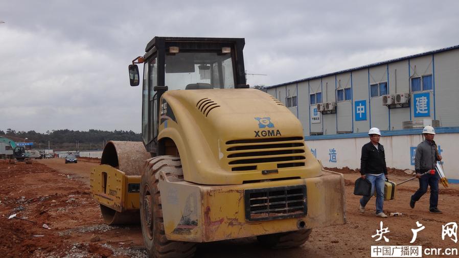 廣西體育中心配套工程項(xiàng)目 目前進(jìn)行地面施工及樓梯欄桿等的施工(央廣網(wǎng)記者 鄧君洋 攝)
