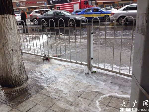 貴陽(yáng)主城區(qū)發(fā)生地下供水管道爆裂(央廣網(wǎng)記者 陳屹 攝)