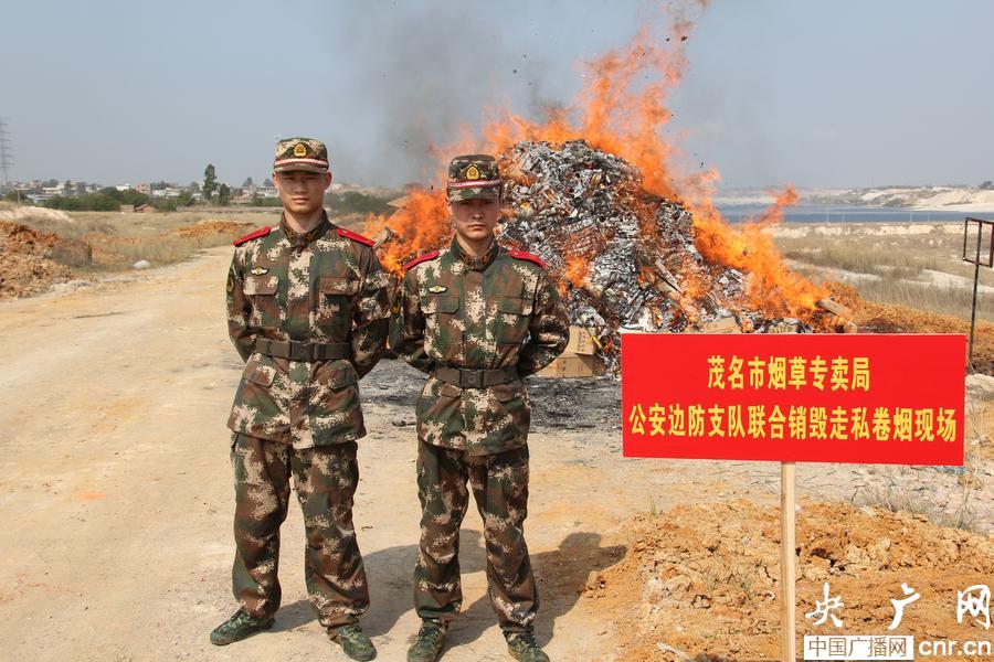 廣東茂名公開銷毀110萬走私香煙(央廣網發(fā) 陳小飛 攝)