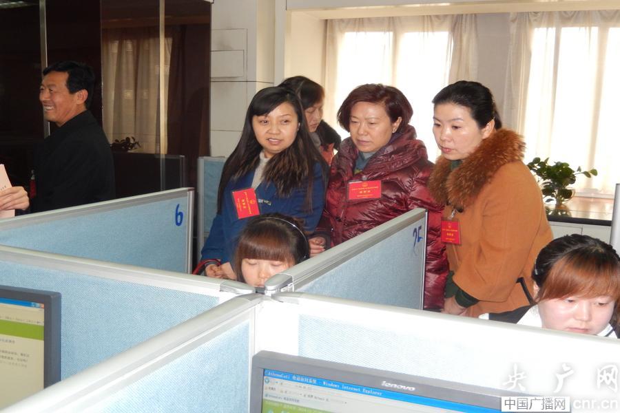 在陜?nèi)珖?guó)人代表在陜西省統(tǒng)計(jì)局社情民意調(diào)查中心進(jìn)行視察(央廣網(wǎng)記者 溫超 攝)