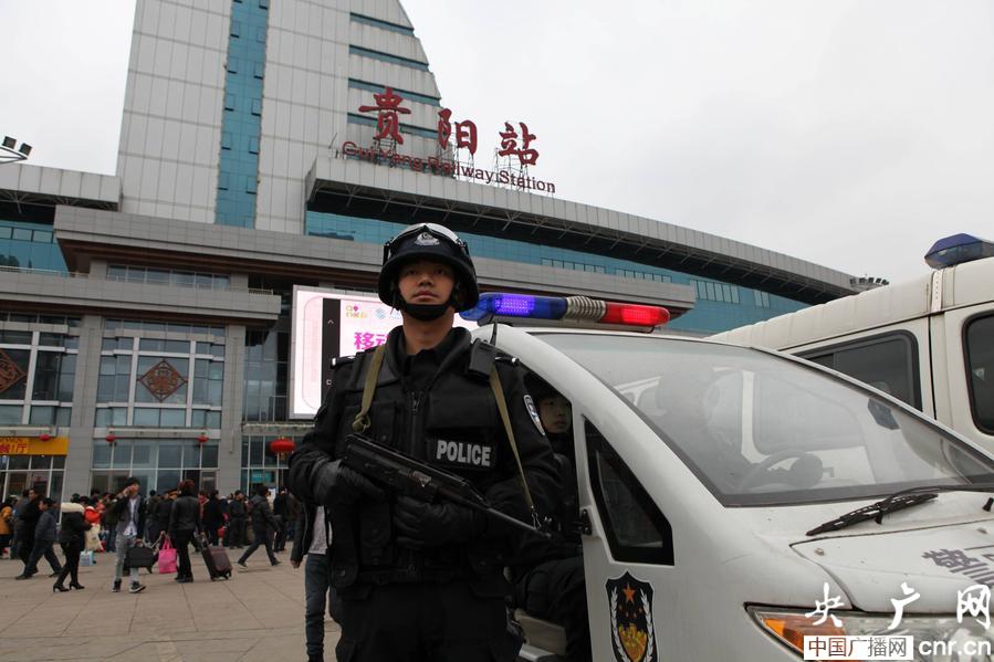 貴鐵警方對(duì)貴陽(yáng)站前廣場(chǎng)實(shí)行24小時(shí)特警武裝巡邏(央廣網(wǎng)發(fā) 劉念陸 陳長(zhǎng)青 攝)